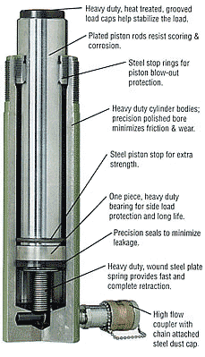 Standards. Steel stop rings, plated pistons and heavy duty construction