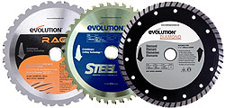 Detailed below is the current range of Evolution Power Tools blades.